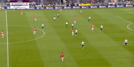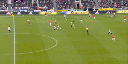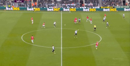 连续两场迎来人数上的优势,这本来是极为有利于曼联的发挥,库尼亚随后在特里皮尔身上更是再次打出明显优势,但被纽卡堵住:
