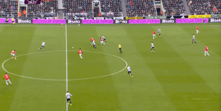 所以在开场之后,纽卡斯尔立刻就打出了有效的横移,用来帮助推进和进攻:
