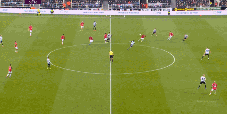 除此之外,面对如今增加了全面性,从而在中路也有战术效果的戈登,马奎尔和约罗显得毫无办法,根本跟不上脚步,所以纽卡斯尔的外围优势确实很明显: